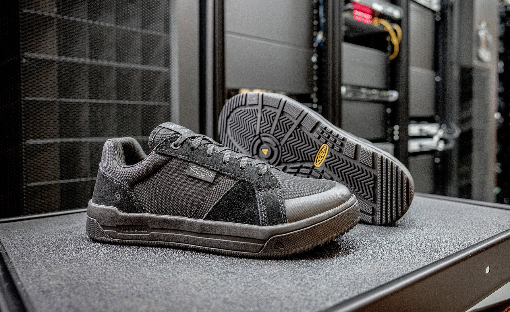 Retro-inspired ESD soft toe work shoe reinvented with lightweight safety features, active fit, and energy-returning comfort for tasklists that donu2019t quit.
