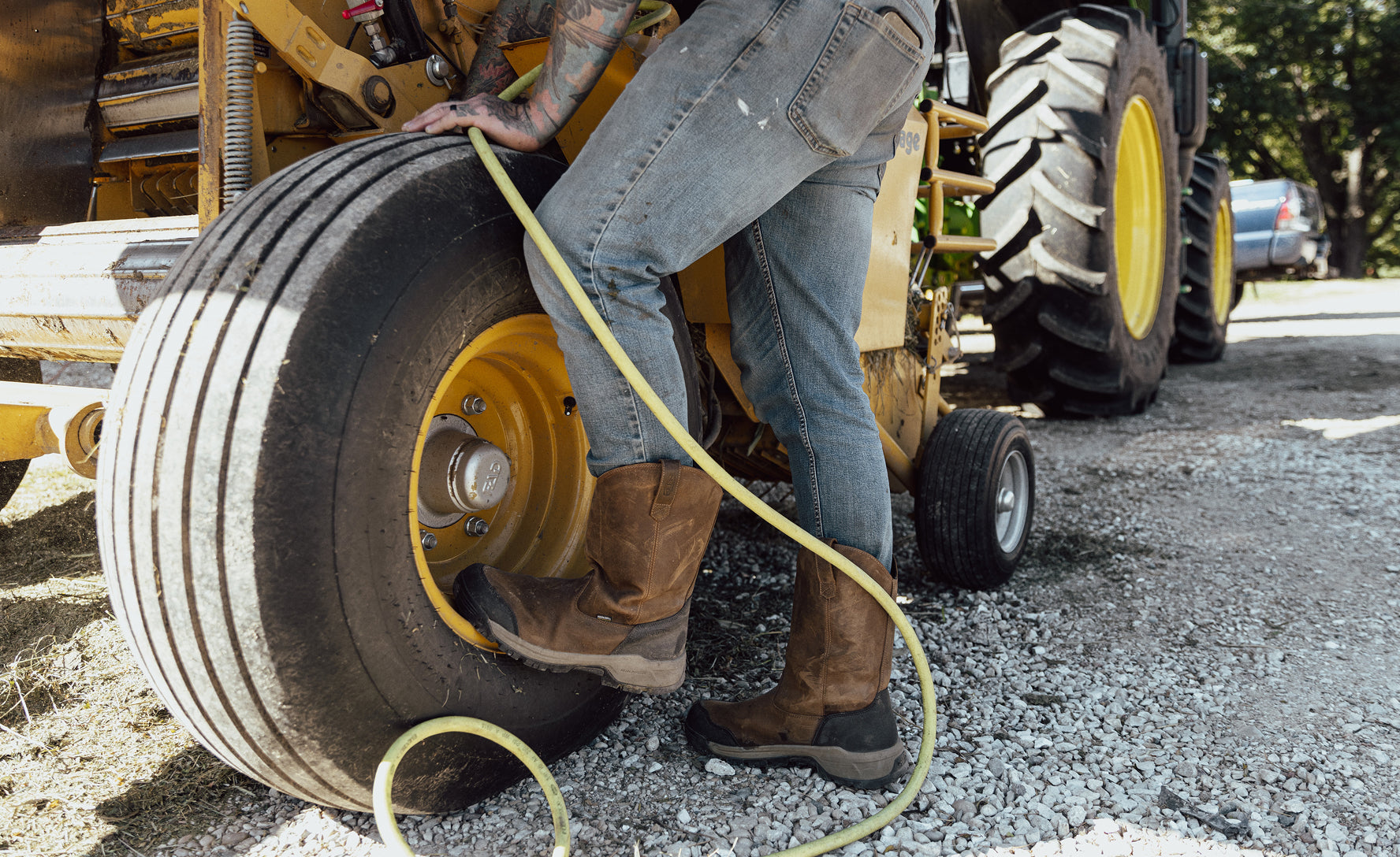 Protects like a work boot, fits like a sneaker. This waterproof pull-on style features a tough leather upper and energy-returning cushioning.