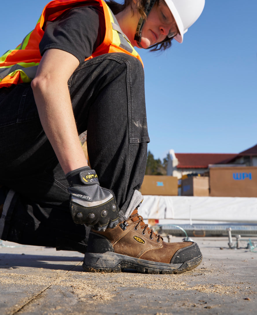 Protects like a work boot, feels like a sneaker, designed for women. This waterproof style features a tough leather upper and energy-returning cushioning.